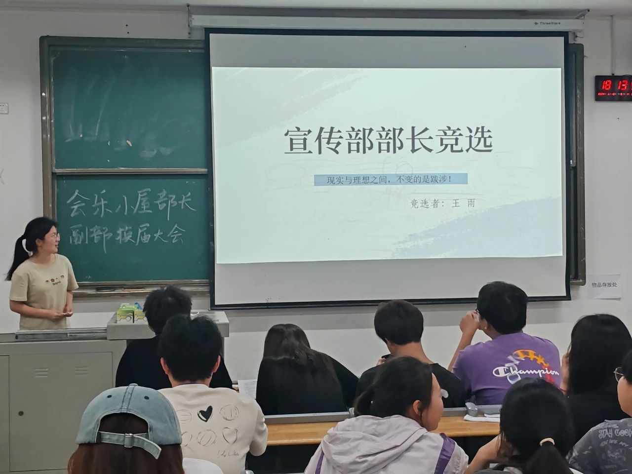 大会在热烈的掌声中开幕。第一位发言的是童祖鸿,她竞选的职位是会长。她开门见山,“服务,团结,追求”是她的竞选宣言。童祖鸿从领导协调,组织策划,资料收集阐述了她对会长这一职务的理解,比如:沟通与联系,活动策划分析和年度总结。还在回望工作经历中谈到自己在会乐小屋中的收获,并同时做出反思。她相信只要不断努力和学习,这些不足都可以得到克服和弥补,然后拥抱更好的自己。最后针对迎新工作多未来展望,她希望未来会乐小屋的发展将会注入更多新的活力和动力。