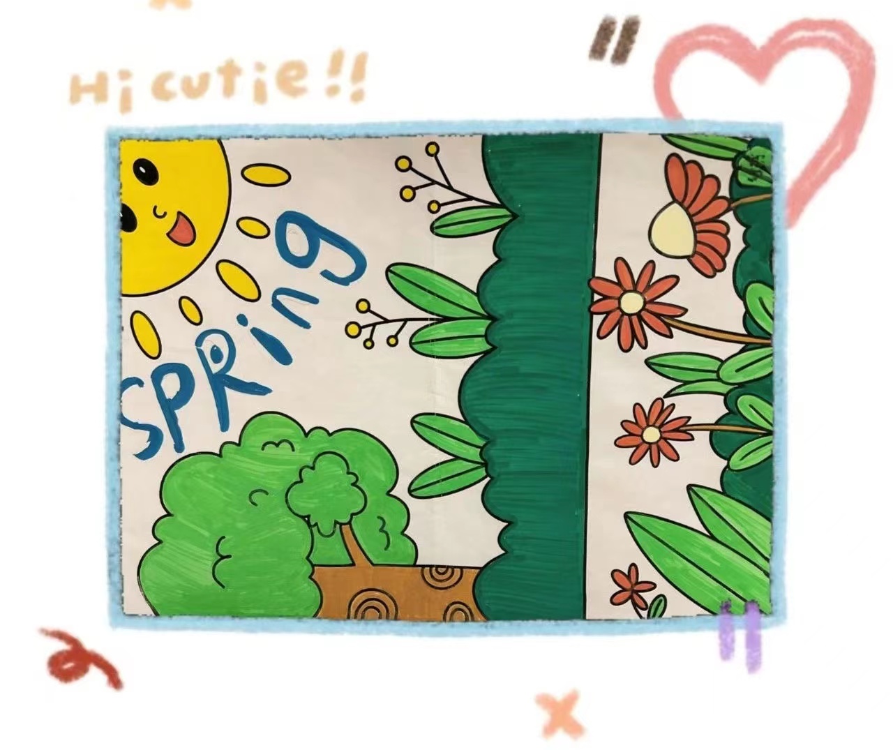 在接下来的时间里,同学们充分发挥自己的想象力和创造力,积极感受着春意的宁静,找回内心的那份柔软,享受生命的美好。让我们的心灵得以蓬勃发展,暂时抛下繁重的学业,去找寻生命的美好。以下是部分优秀作品展示:
