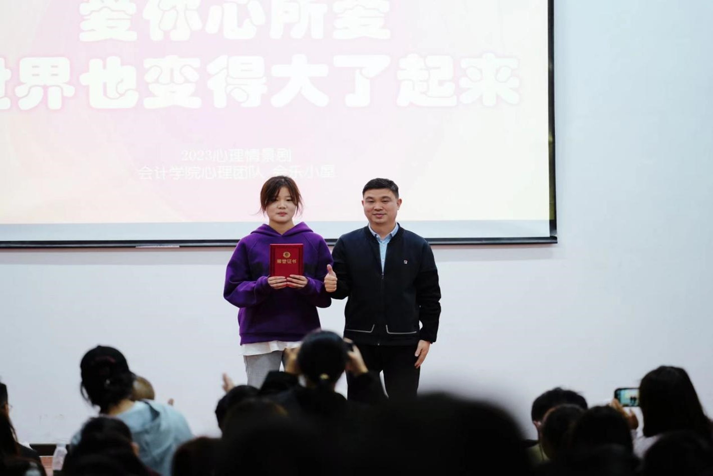 为进一步宣传与普及心理健康知识,营造相互关爱的和谐氛围,太阳成城集团tyc234cc心理工作站“会乐小屋”于2023年11月7日晚上18:00在综2-105举办“爱你心所爱,世界也变得大了起来”主题心理情景剧大赛。太阳成城集团tyc234cc党总支书记孙建伟、团总支书记郭庆、心理工作站指导老师戴君、全体辅导员以及会乐小屋所有成员、各班心理委员等学生代表、向日葵心理健康中心成员等参加活动。