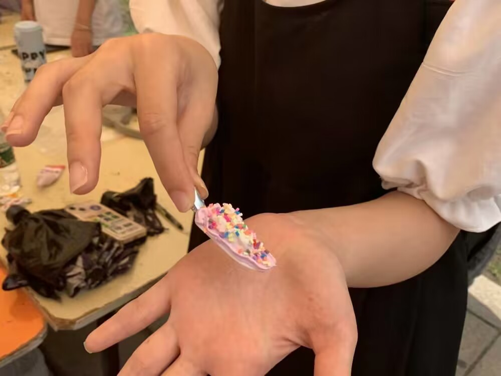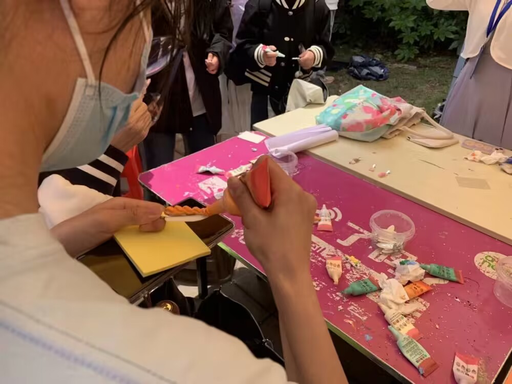 接下来进行了“DIY“奶油胶发夹的制作。大家用自己喜欢的颜色和图案,在准备好的材料上展现了创造力和想象力。在制作这个过程中,大家体验到了手
