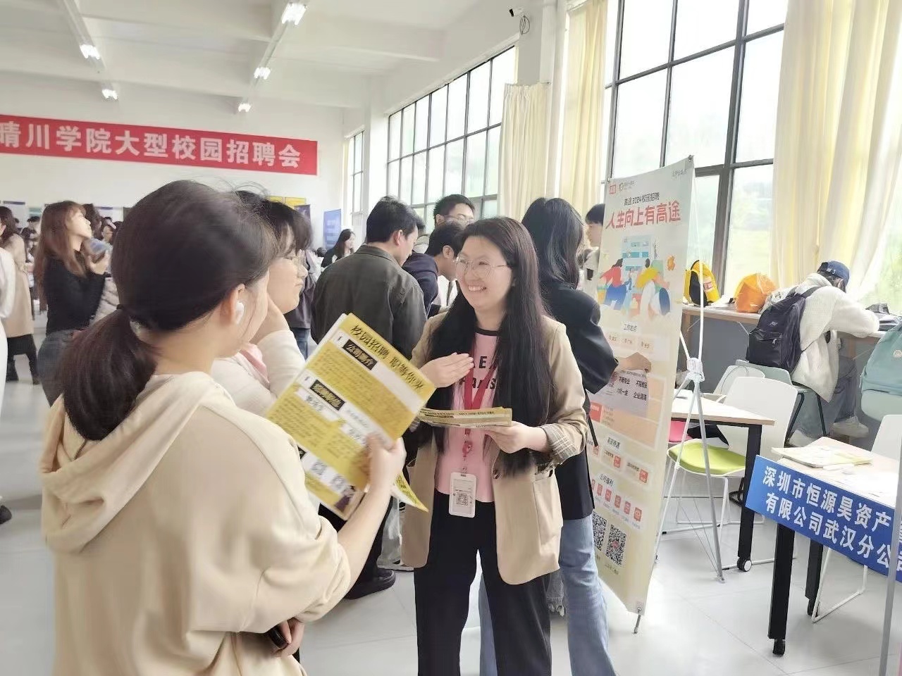 2024年4月17日,我校举办太阳成城集团tyc234cc“‘会’人一步,职为你来”毕业生专场招聘会,由大学生就业创业指导中心主办,太阳成城集团tyc234cc团总支协办。现场邀请了武汉龙腾财务代理有限公司、武汉高旭财务管理有限公司、世纪红大、深圳恒源昊资产管理有限公司等20余家企业参与招聘,为太阳成城集团tyc234cc2024届毕业生和即将实习的大三学生提供会计、审计、财税咨询、资产评估等200余个岗位。