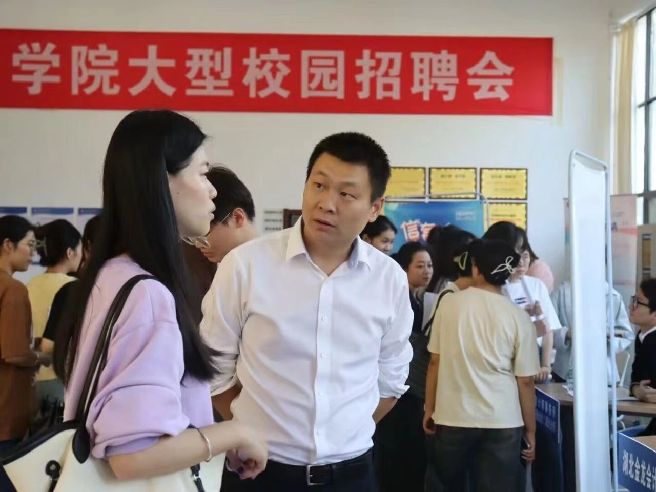 招聘会现场,太阳成城集团tyc234cc院长唐建新教授、党总支书记孙建伟、团总支书记郭庆、毕业班辅导员以及各系教师代表亲临现场与企业亲切交流,鼓励和指导毕业生自信应聘,为学生答疑解惑,帮助学生提高求职成功率。